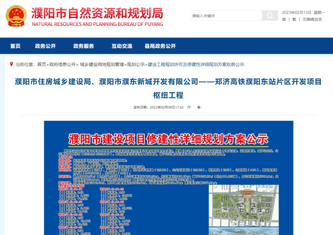 济郑高铁濮阳东站片区开发项目枢纽工程修建性详细规划方案公示