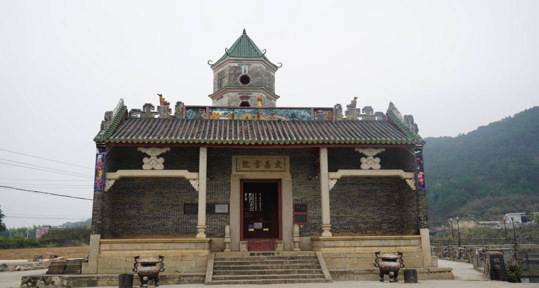 在怀集县怀城街道兴贤居委会沿江东路绥江河北岸,有一座“塔院合一”的古建筑——怀城文阁,又名文昌阁、文昌书院,始建于明朝万历四十七年(1619年),建成于天启元年(1621年),至今具有400多年历史。