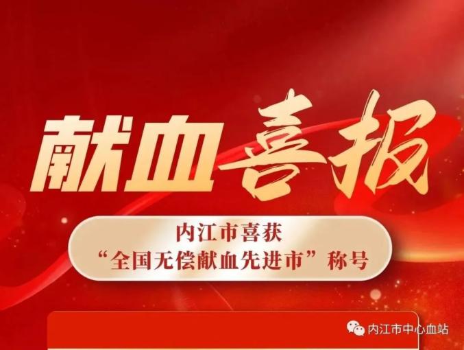 原标题:《喜讯!内江市获“全国无偿献血先进市”称号》