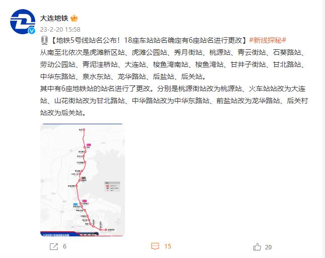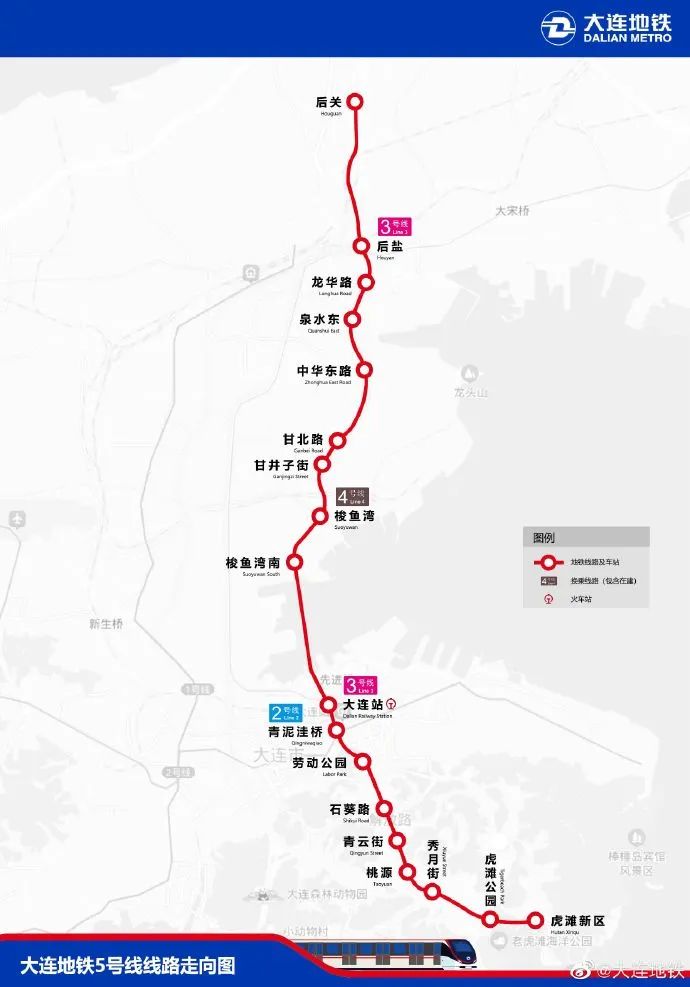 从南至北依次是虎滩新区站、虎滩公园站、秀月街站、桃源站、青云街站、石葵路站、劳动公园站、青泥洼桥站、大连站、梭鱼湾南站、梭鱼湾站、甘井子街站、甘北路站、中华东路站、泉水东站、龙华路站、后盐站、后关站。