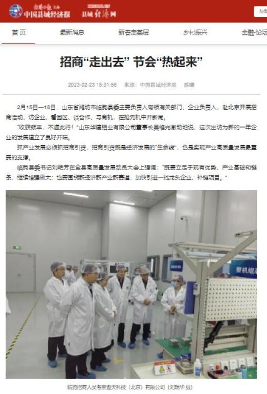 2月15日—18日,山东省潍坊市临朐县委主要负责人带领有关部门、企业负责人,赴北京开展招商活动,访企业、看园区、谈合作、寻商机,在抢先机中开新局。