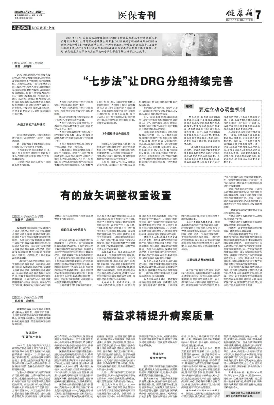 DRG改革实践中,上海市逐渐形成了具有上海特色的“七步法”分组技术路径。
