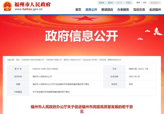 原标题:《放宽市场准入!福州发布新政,开民宿有利好》