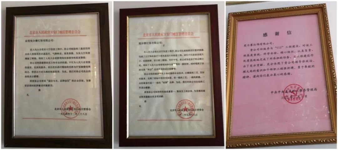 其中,一封来自人民大会堂管理局的感谢信写道:“贵公司积极参与人民大会堂工程建设,科学生产、精心组织、认真负责……充分体现了贵公司领导讲政治、顾大局意识和职工顽强拼搏的精神。”