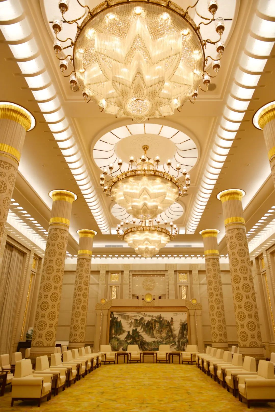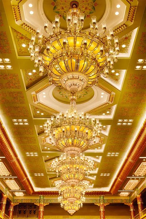 人民大会堂金色大厅,即每年国务院总理召开新闻发布会的场地,大厅灯具修改了18次,前后历时5个月,最后才呈现在大家眼前。