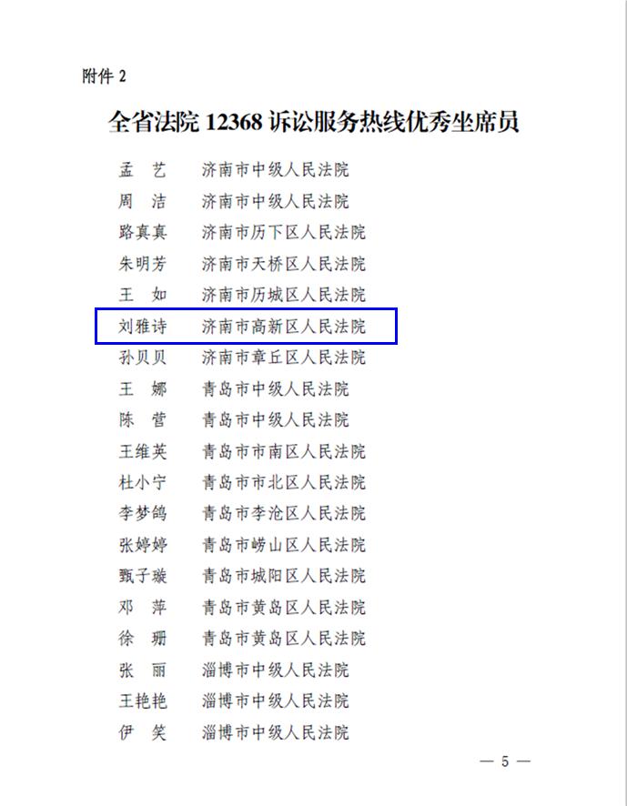 原标题:《【喜报】济南高新区法院立案庭刘雅诗被评为“全省法院12368诉讼服务热线优秀坐席员”》