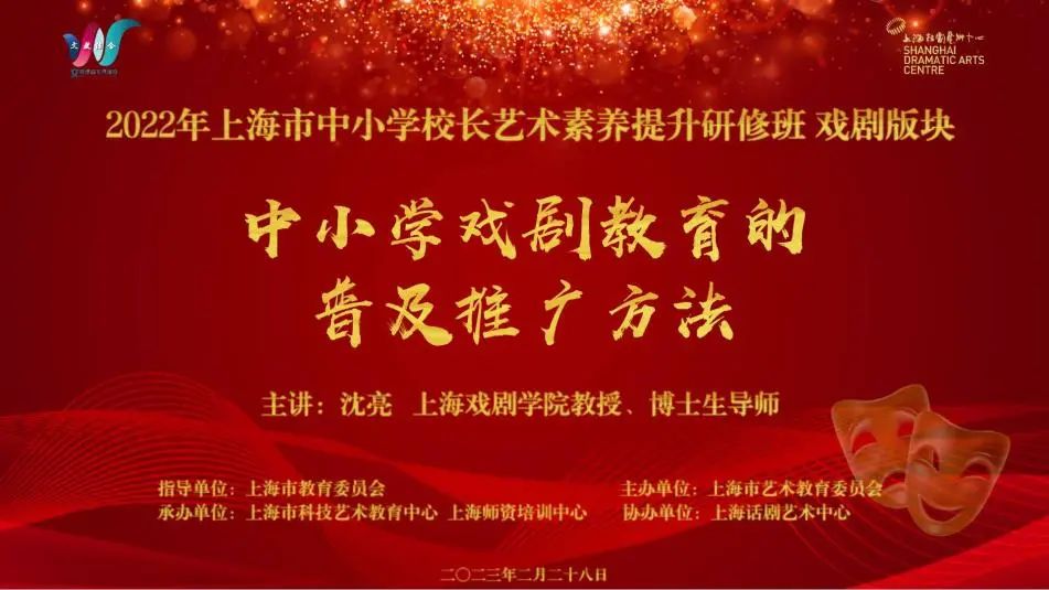 近期,上海市中小学校长艺术素养提升研修班顺利举行了线上名师讲座——“中小学戏剧教育的普及推广方法”。本次活动邀请到了上海戏剧学院教授、博士生导师沈亮老师作为主讲嘉宾。