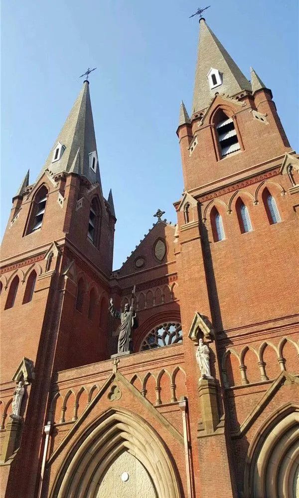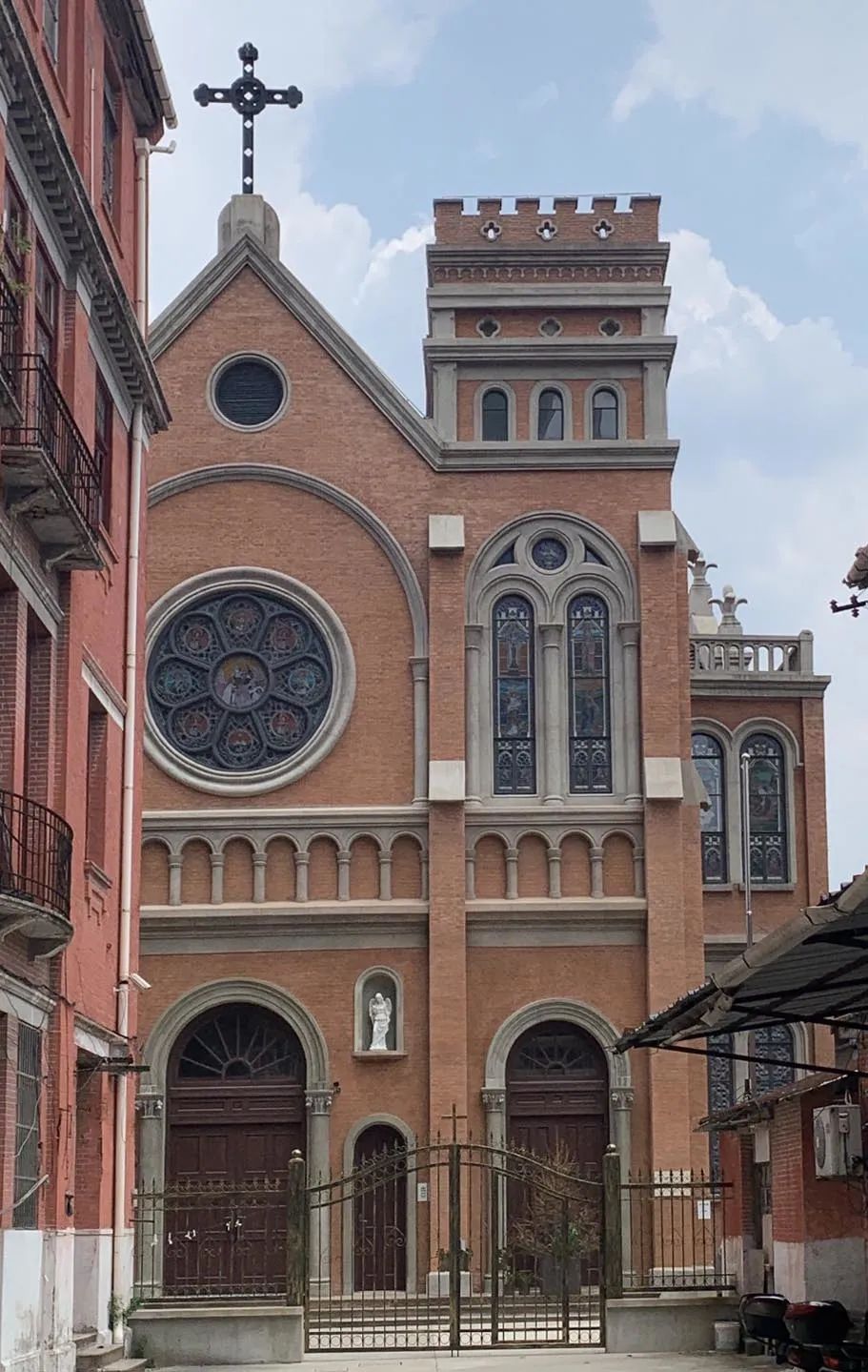 作为上海唯一的仿法国中世纪双钟塔式哥特式教堂,其平面仿照法国的亚眠大教堂,明显的一处区别是后堂缩短。