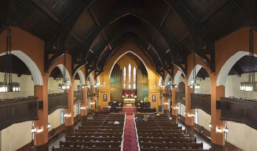 室内露明的人字形木屋架,强烈地展示了中国木构建筑体系的特征,展现了上海教堂的本土化特征。