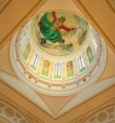 教堂的风格为拜占庭式,砖混结构,空间集中式布局,希腊十字平面,以相互垂直的两条中轴线为构图中心,在中央安排层层收进的拱顶,最高处以一个穹顶构成整个建筑的视觉中心,形态富有变化,仿佛一朵盛开的花朵。