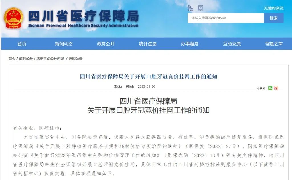 四川率先开展牙冠竞价挂网,种植牙整体费用有望减半!