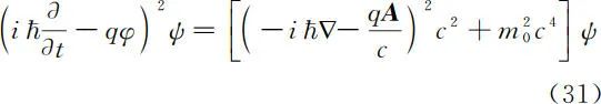 稍加整理可得式(32)。这比直接从式(31)导出式(32)更简单。但是,这也就意味着电磁场中克莱因-高登方程具有构造或猜测的成分。