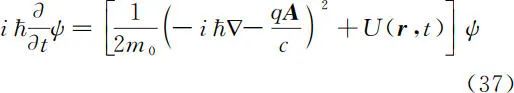 ,代入式(31),经过复杂的运算并考虑低速条件下的近似,可得到电磁场中的薛定谔方程(推导过程略)