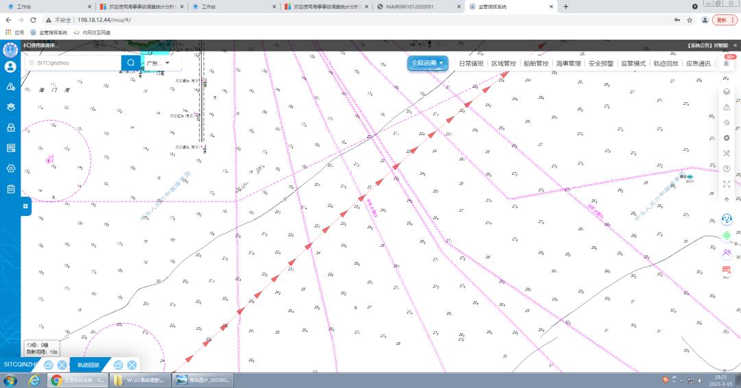 4.选择锚地时,船长应采取查阅最新版海图等手段避开海底管线水域。锚泊过程中保持正常值班,关注船位变化,发现走锚后及时采取措施,避免走锚接近海底管线区域。