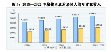 农村居民人均可支配收入30931元,增长6.2%。其中,工资性收入15377元,增长6.5%;经营净收入7711元,增长6.3%;财产净收入2967元,增长5.1%;转移净收入4876元,增长5.7%。农村居民人均消费性支出21196元,增长3.6%。