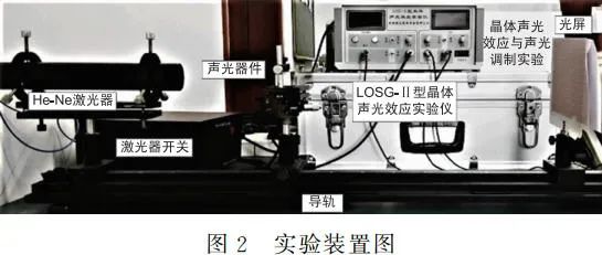 声速测量实验广泛开设于各高校大学物理基础实验和物理专业实验中,其中利用声光效应研制出的超声光栅测量声速的方法因其精度高和易于操作已逐渐开始受到实验教学的应用和重视[1,2]。该实验提供了一种准确测定声波在透明介质中传播速度的方法,并很好地帮助学生理解声光相互作用的物理过程。目前,大学物理实验中超声光栅法主要用于液体中声速测量,随着压电传感器技术的发展和新仪器的开发,逐渐扩展到对固体中声速测量的实验教学。据我们了解,受大学实验开设时限短的限制,各大高校对采用声光效应方法测量固体声速实验的相关研究和探索还鲜有报道。本文首先利用 LOSG-Ⅱ 型晶体声光效应实验仪对二氧化碲晶体材料的声速进行了实验测量,得到超声波声速数值,同时利用 MATLAB 软件对实验中产生的衍射图像进行识别和数据处理,得出更为精确的声速数值。在此基础上利用基于量子力学原理的密度泛函理论对二氧化碲晶体进行结构建模并通过计算其力学性质得到理论模拟声速值,与实验测量值进行对比和讨论。通过以上方法锻炼学生的实验操作能力以及利用 MATLAB 编程进行图像识别和学习高精度数据处理方法,同时利用晶体建模和模拟计算帮助学生从理论上深入理解声光效应实验现象和原理,为在大学中更好开展声光效应相关实验设计和理论模拟计算提供参考。
