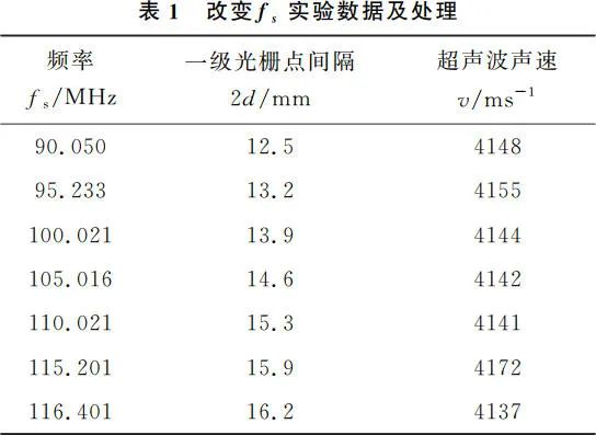 联立上述式(1)与式(2),计算超声波波长 λs,把实验中读取的超声波频率 fs 代入下式