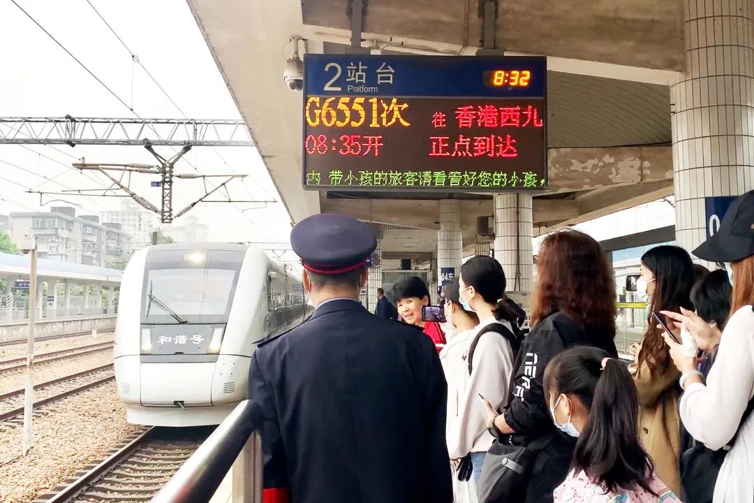 车站专门安排经验丰富的客运员带队作业,同时为了优化客运组织,专门设置了香港西九龙方向的候车区域,并安排专人对关键岗位进行重点盯控,根据售票情况提前做好预想,做好岗位人员调配。