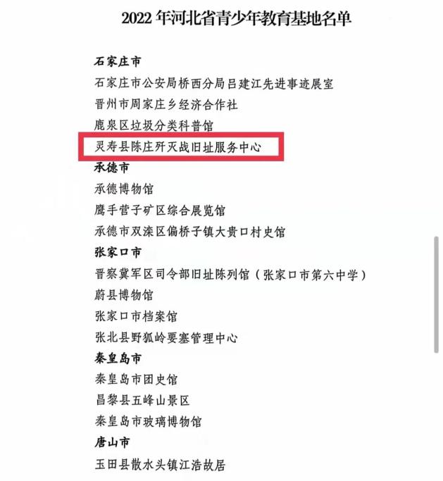 原标题:《喜报!陈庄歼灭战旧址被命名为“2022年河北省青少年教育基地”》