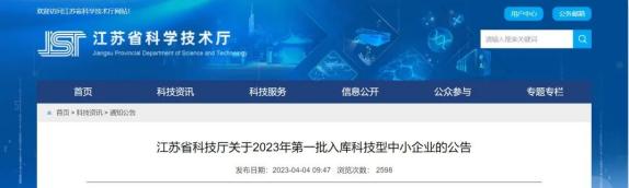 江苏省科学技术厅公布了