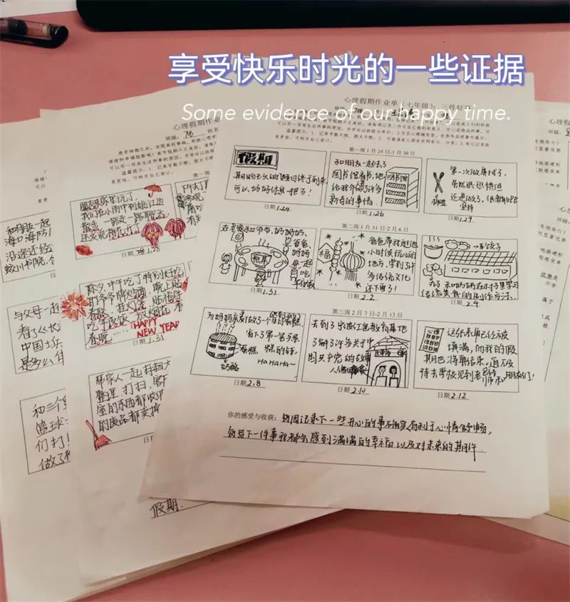 学校基于积极心理学原理,开展一系列心育课程。从一年级到九年级,分别开展“积极自我”“积极情绪”“积极关系”“积极投入”“积极成就”“积极意义”六大专题的心育课程,利用寒暑假,组织开展如“感恩拜访”“幸福日记”“家庭优势树”等活动,系统全面地提升学生主观幸福感。