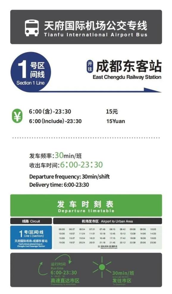 开通成都东客站至天府国际机场点对点直达区间线路,补充机场公交专线1号线的运力保障,提升成都东客站乘客出行体验。