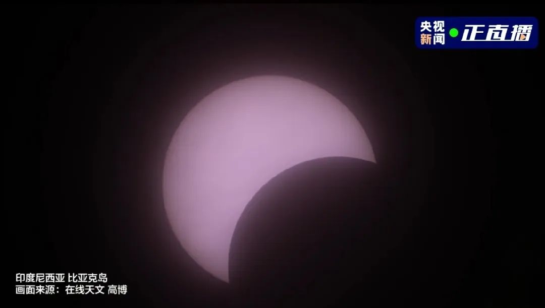 印度尼西亚比亚克岛上空出现的日食。来源:央视频截图