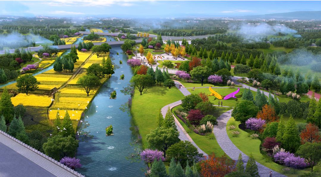 通过建设景点,种植景观植物,沿滨河路打造四季风景不同,颜色各有特点的摩登公路。