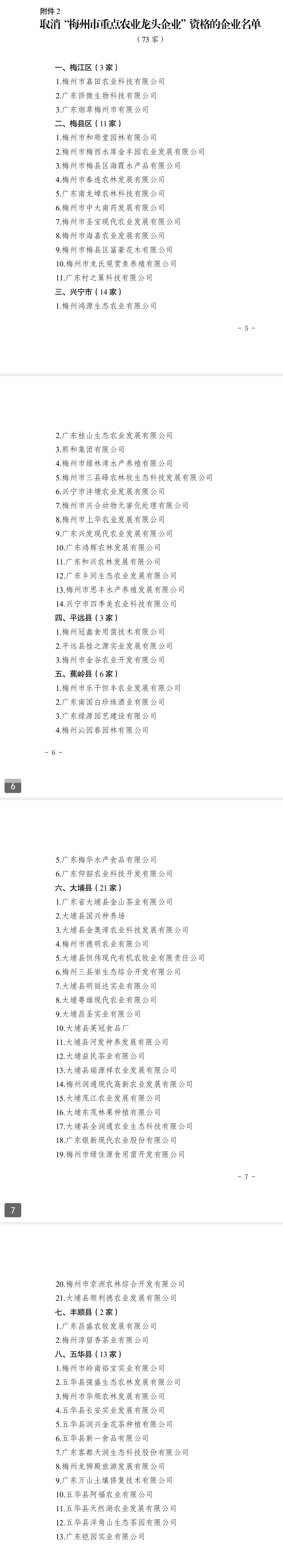 据了解,我市此次新认定梅州市集益生态农业发展有限公司等22家企业为梅州市重点农业龙头企业;取消梅州市嘉田农业科技有限公司等73家企业“梅州市重点农业龙头企业”资格,不再享受市重点农业龙头企业相关优惠政策,并由企业所在地县(市、区)农业农村部门收回牌匾。