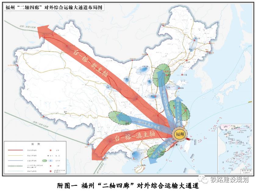 立足“海丝”和对台双门户优势,主动对接国家和区域交通主骨架,全面构建北接长三角、京津冀,南联粤港澳,西进经长江中游城市群、成渝衔接陆上丝绸之路经济带、西部陆海新通道,东出辐射台湾、东盟、金砖国家的“两轴四廊”对外通道格局,进一步提升福州在主动融入服务国家战略,塑造高质量发展新优势中的地位,为福州拓展经济社会发展空间腹地、促进国内国际双循环提供强力支撑。