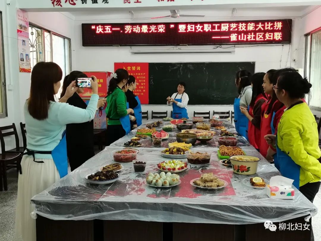 为庆祝五一国际劳动节,4月28日,雀山社区妇联联合工会举办了一场妇女职工厨艺技能大比拼。