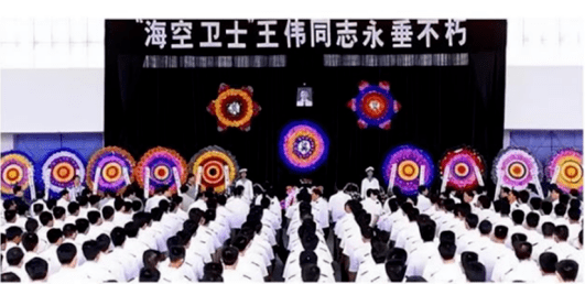 同年4月24日,中国海军批准王伟为革命烈士,中央军委授予王伟“海空卫士”荣誉称号,颁发一级英模奖章。