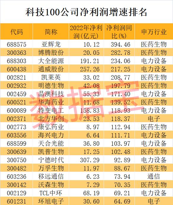 超四成科技龙头公司净利润逾10亿元,其中宁德时代、通威股份、工业富联、大全能源、特变电工、隆基绿能、海康威视、中芯国际8家公司净利润破百亿。