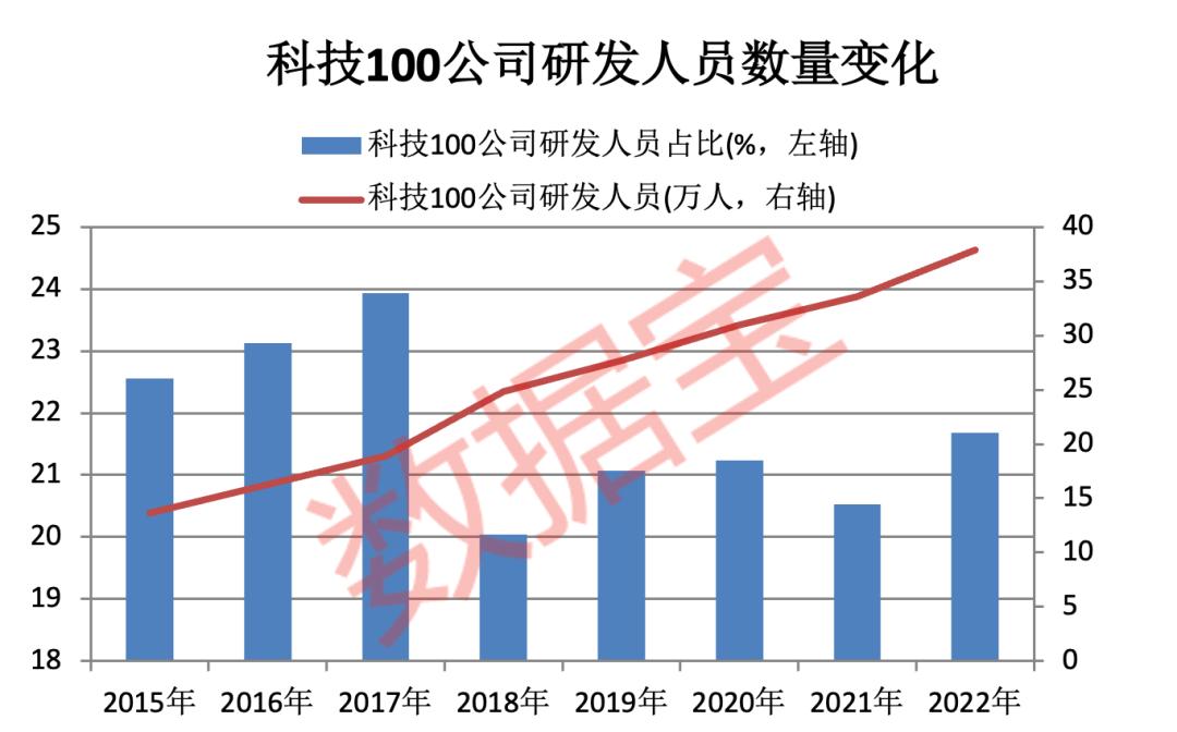 证券时报·数据宝以中证科技100指数为基础,统计A股100家科技龙头公司的整体情况。(注:中证科技100指数从沪深两市的科技主题空间选取100只研发强度较高、盈利能力较强且兼具成长特征的科技龙头公司股票作为指数样本股)