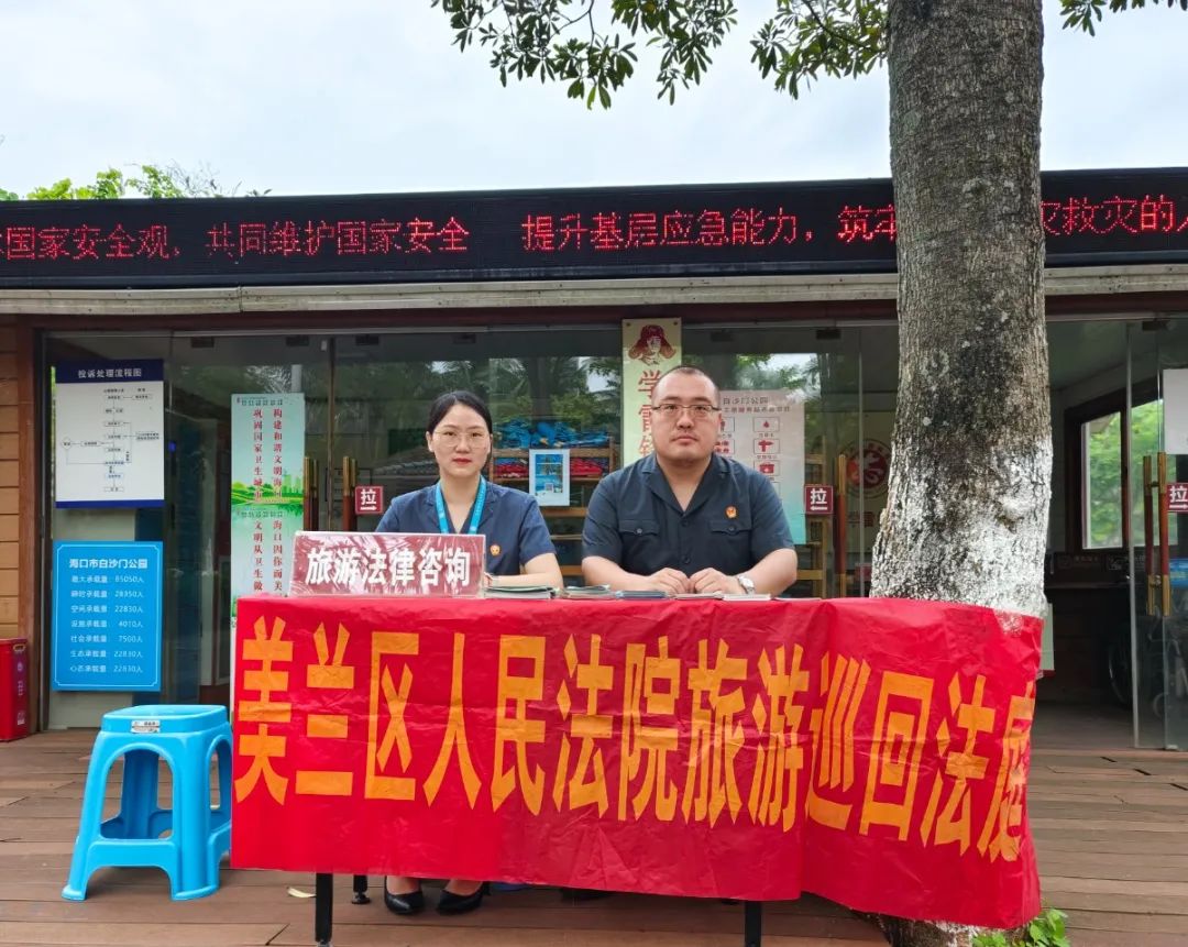 五一假期,海口法院旅游巡回法庭进驻全市多个景区,充分发挥旅游巡回法庭普法宣传的前沿阵地作用,为游客提供暖心法治服务,司法护航游客“五一”安心玩。