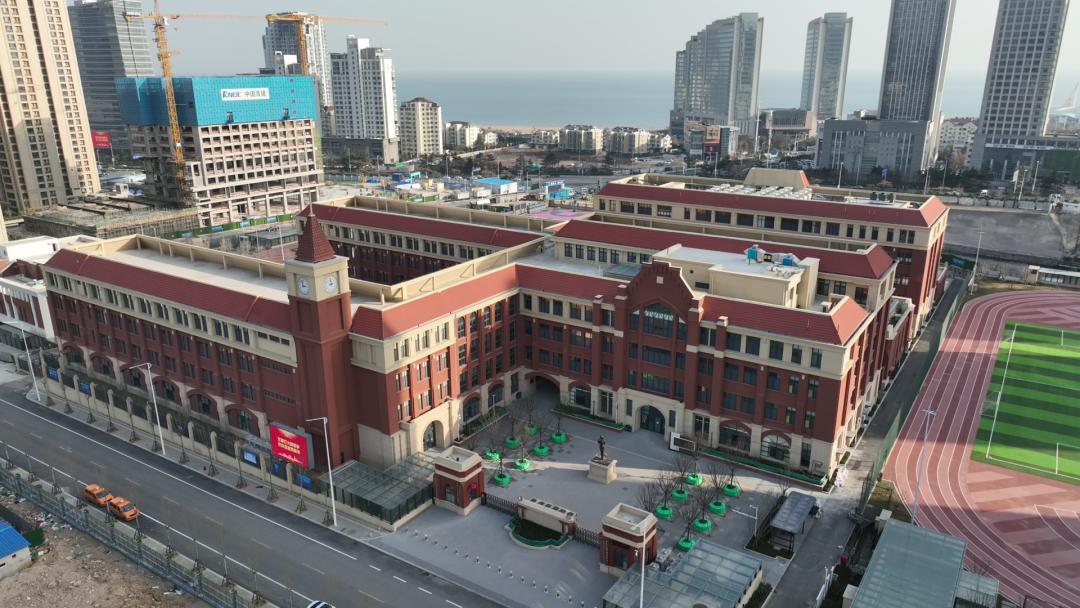 学校总建面7万多平米,由2幢小学教学楼、1幢中学教学楼以及行政楼、风雨操场、游泳馆、报告厅、食堂等组成,涵盖小学、中学共54班,九年一贯制。小学是崂山区山东头学校,中学是岛城名校青岛实验初中教育集团的崂山分校。