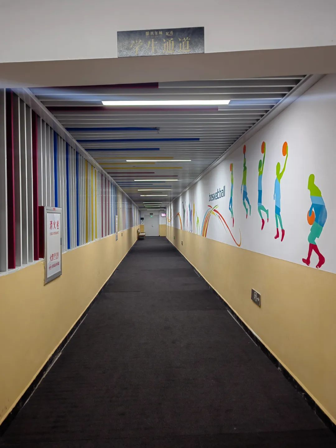 这条 学生通道 位于崂山区银丰玖玺城一期珑府地下,大概几十米长,一头是小区,一头是学校。孩子们走出单元门——进入园区公共电梯——出电梯走学生通道——进入校园。