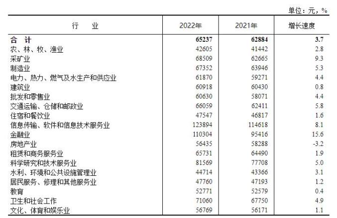 2022年城镇非私营单位分行业门类就业人员年平均工资。图片来源国家统计局网站
