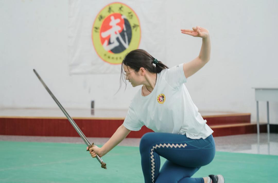 吕敏瑞加入了武术协会。她在武协的这个群体中,感受了师兄师姐对师弟师妹真诚无私的关照,也在其中找到了难能可贵的归属感,并被武协历届传承的使命感和正能量深深影响。在那里,她每晚9点开始跑步、踢腿,从最初的体前屈只能手指碰地,到练了半学期后,能下竖叉。