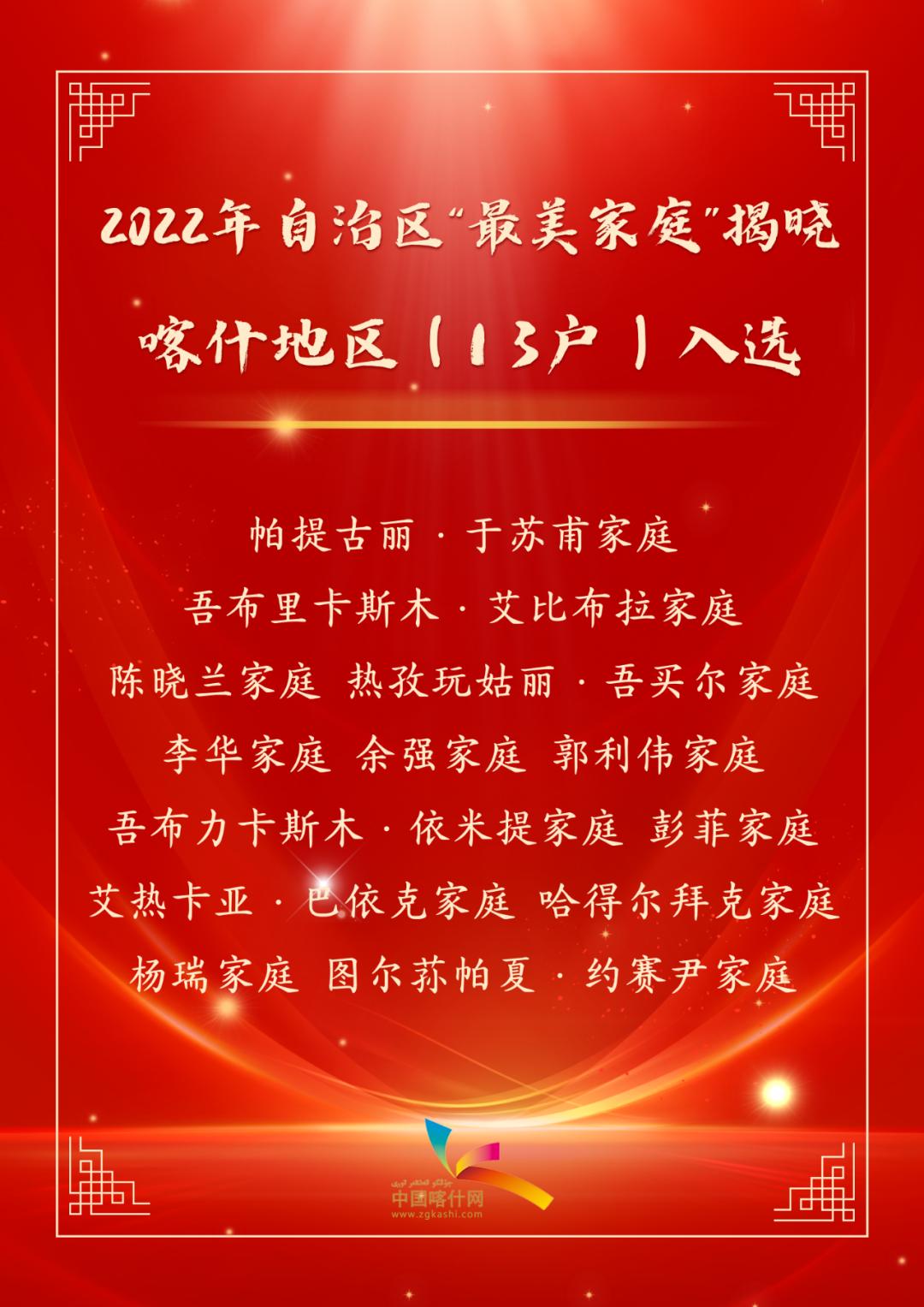 原标题:《名单来了!2022年新疆最美家庭揭晓,喀什13户家庭入选》