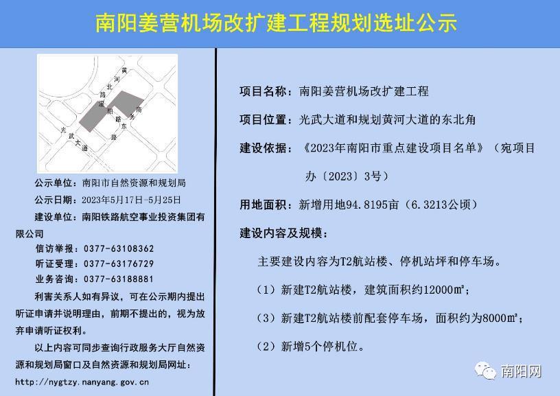 原标题:《南阳姜营机场改扩建工程规划选址公示》