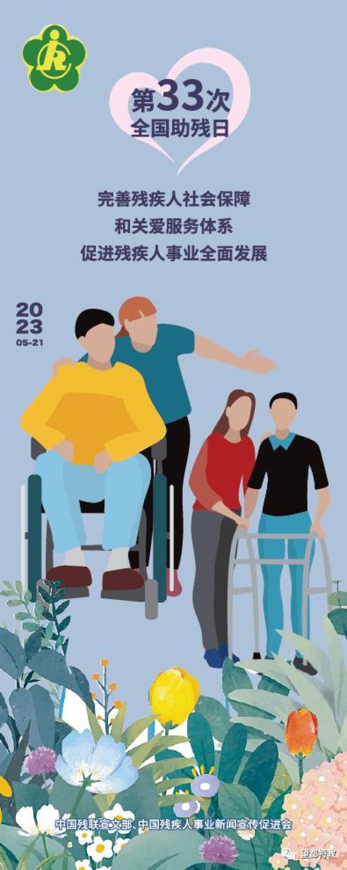 2023年5月21日是第33个“全国助残日”,主题是“完善残疾人社会保障制度和关爱服务体系,促进残疾人事业全面发展”。