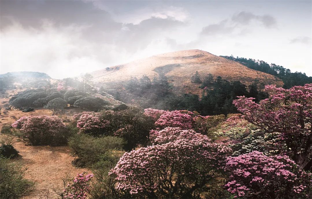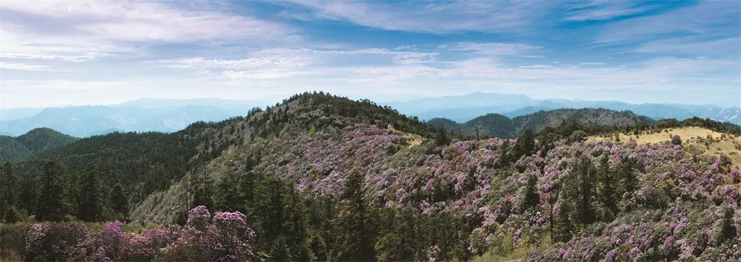 五月,楚雄州大姚县百草岭,连片的杜鹃花盛放,绚烂花海形成一幅气势恢宏的画卷,在崇山峻岭间绵延百里,十分壮观。