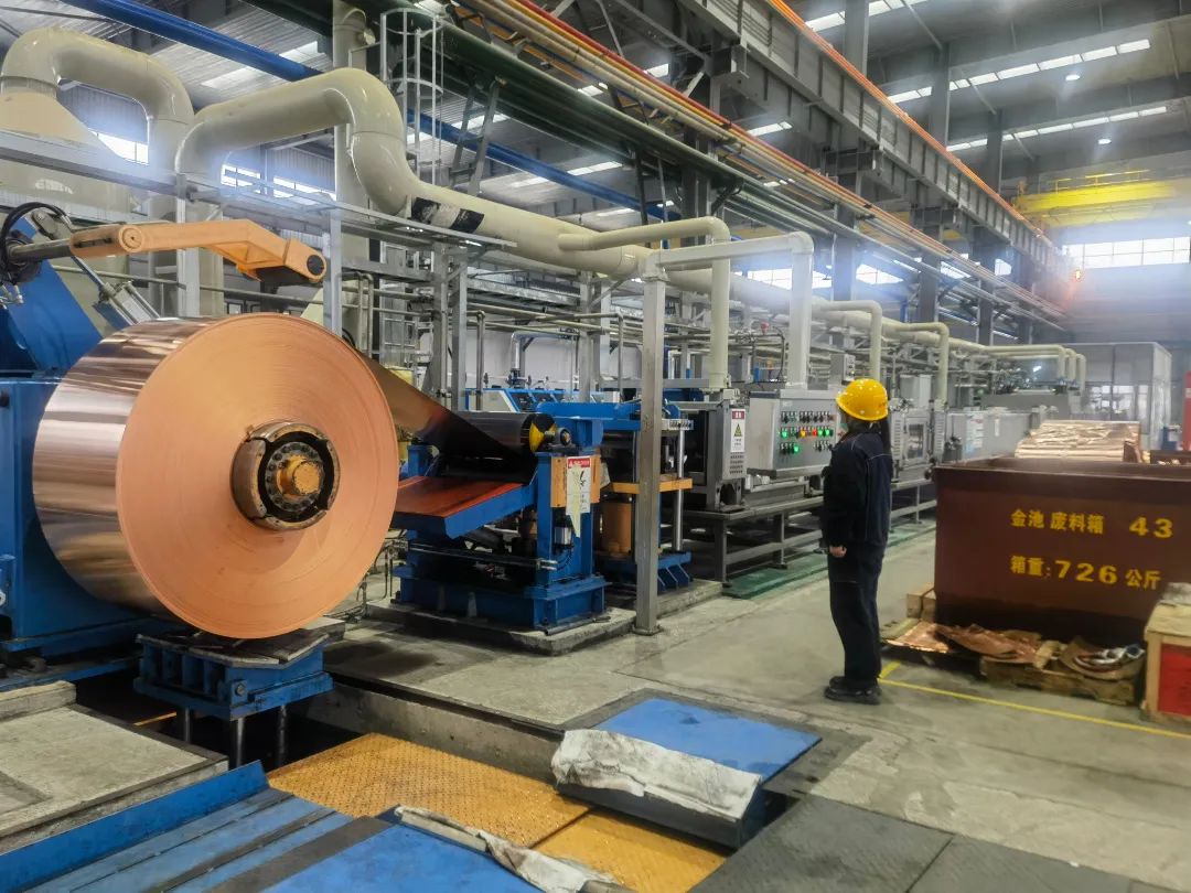 “我们主要生产高精度铜板带,产品广泛应用于消费类电子产品、新能源汽车等领域。”公司常务副总经理陈庆健说。经过一年多的磨合,今年公司全面进入正轨,1至4月就已完成产值9.2亿元,目前订单充足,正向着全年产值30亿元目标全力冲刺。