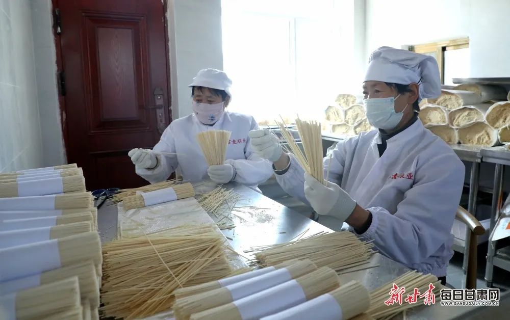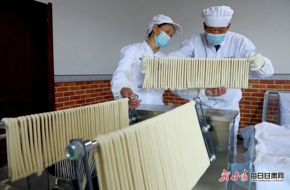 作为特色传统优势产业项目,民乐县把传统手工挂面作为发展壮大农村集体经济的重要抓手,不断铸匠心、优品质、扩规模、增效益,通过“双培双带”模式,大力引导村民在家门口就业,鼓起了村民们的“钱袋子”。(新甘肃·每日甘肃网通讯员 王晓泾 摄影报道)