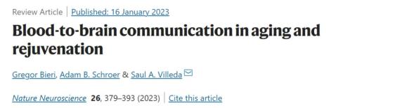 血液时刻与大脑进行“沟通”,影响着大脑的健康和功能。在衰老过程中,血液中发生的变化可能会促进大脑的衰老。利用分子手段和生活方式干预等系统性措施,人们似乎有望通过改善血液状态,从而逆转大脑的衰老状态,使大脑年轻化。2023年1月16日,美国加州大学旧金山分校的Saul A. Villeda教授团队在Nature Neuroscience发表了题为“Blood-to-brain communication in aging and rejuvenation”的综述,系统性总结了血液中的细胞和可溶性信号对大脑衰老和年轻化的影响。