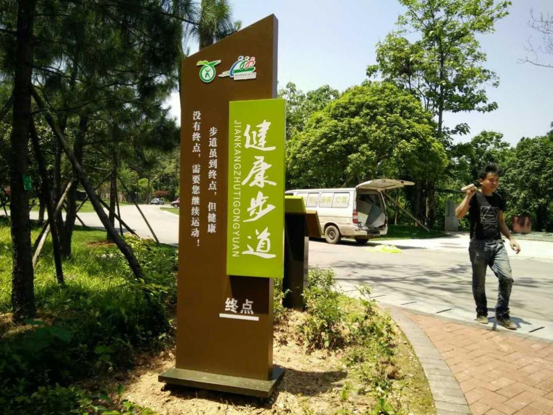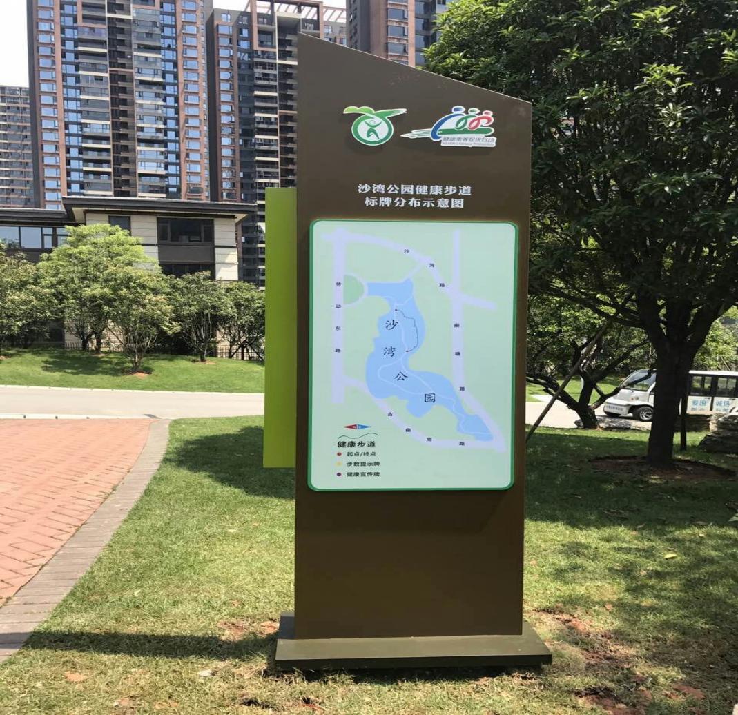 2.有醒目的健康主题公园标志、全民健康生活方式行动标识、健康素养促进行动标识,标注公园的总体概况,平面分布图和功能分区等内容,突出健康步道相关信息。