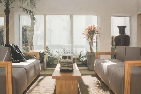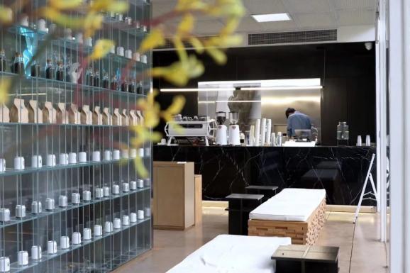 咖啡厅的外观和室内以简洁大方的白色为主,搭配优雅的灰色和温暖的原木色,极具生命力的绿植点缀其中,整个空间简约而不失灵动。