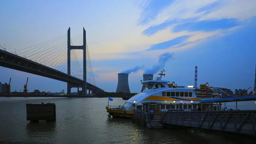 轮渡老早主要是接送两岸客人,现在的人乘轮渡更多是为了游玩体验。在杜行渡口,黄浦江边轮船来来往往,形成了一道靓丽风景。夕阳下,更有“落日余晖波光映,舒云剩影水色悠”的美感。