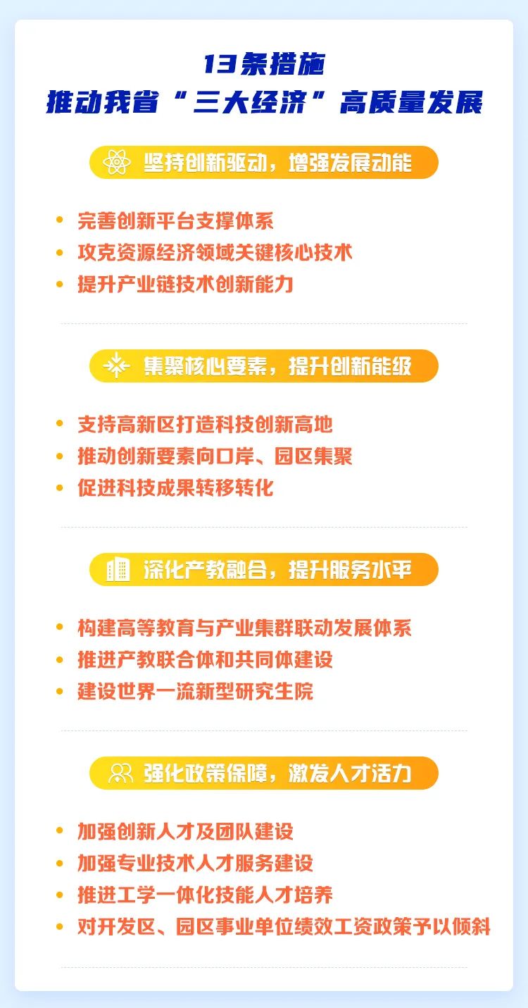 为更好发挥教育、科技、人才在全省高质量跨越式发展中的基础性、战略性支撑作用,服务全省资源经济、口岸经济、园区经济发展,云南省教育厅、云南省科学技术厅、云南省人力资源和社会保障厅联合发布《推动资源经济口岸经济园区经济高质量发展13条措施》,合力推动全省经济实现质的有效提升和量的合理增长。